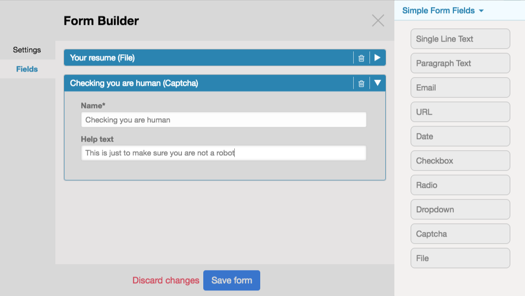 • New fields are available for the Form Builder: